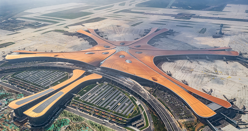 北京大興國際機場位于中國北京市大興區榆垡鎮、禮賢鎮和河北省廊坊市廣陽區之間,為4F級國際機場、世界級航空樞紐、國家發展新動力源 。