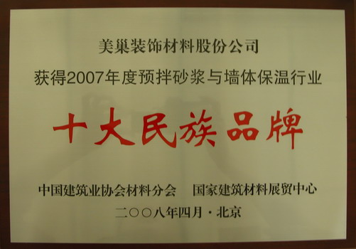 2007年度預伴砂漿與墻體保溫行業(yè)“十大民族品牌”