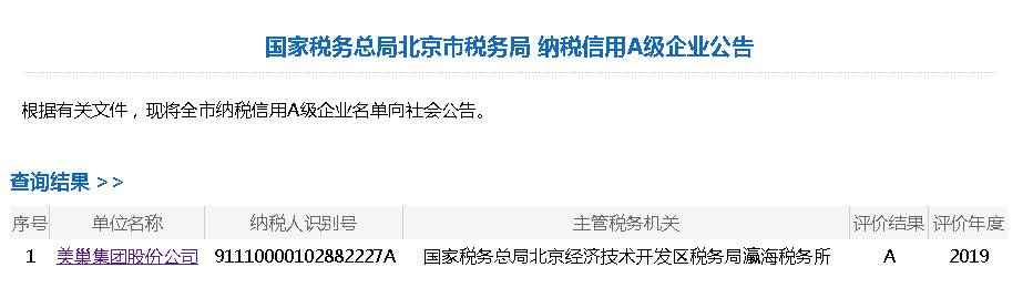 本次納稅信用評價工作是國家稅務主管單位對企業的稅務管理情況進行的綜合評價,信用等級由高到低依次為A、B、M、C、D五個級別。納稅信用評級每納稅年度評價一次,2020年納稅信用A級企業占總參與評選企業的5.7%,美巢集團此次已是連續13年獲評納稅信用A級企業。