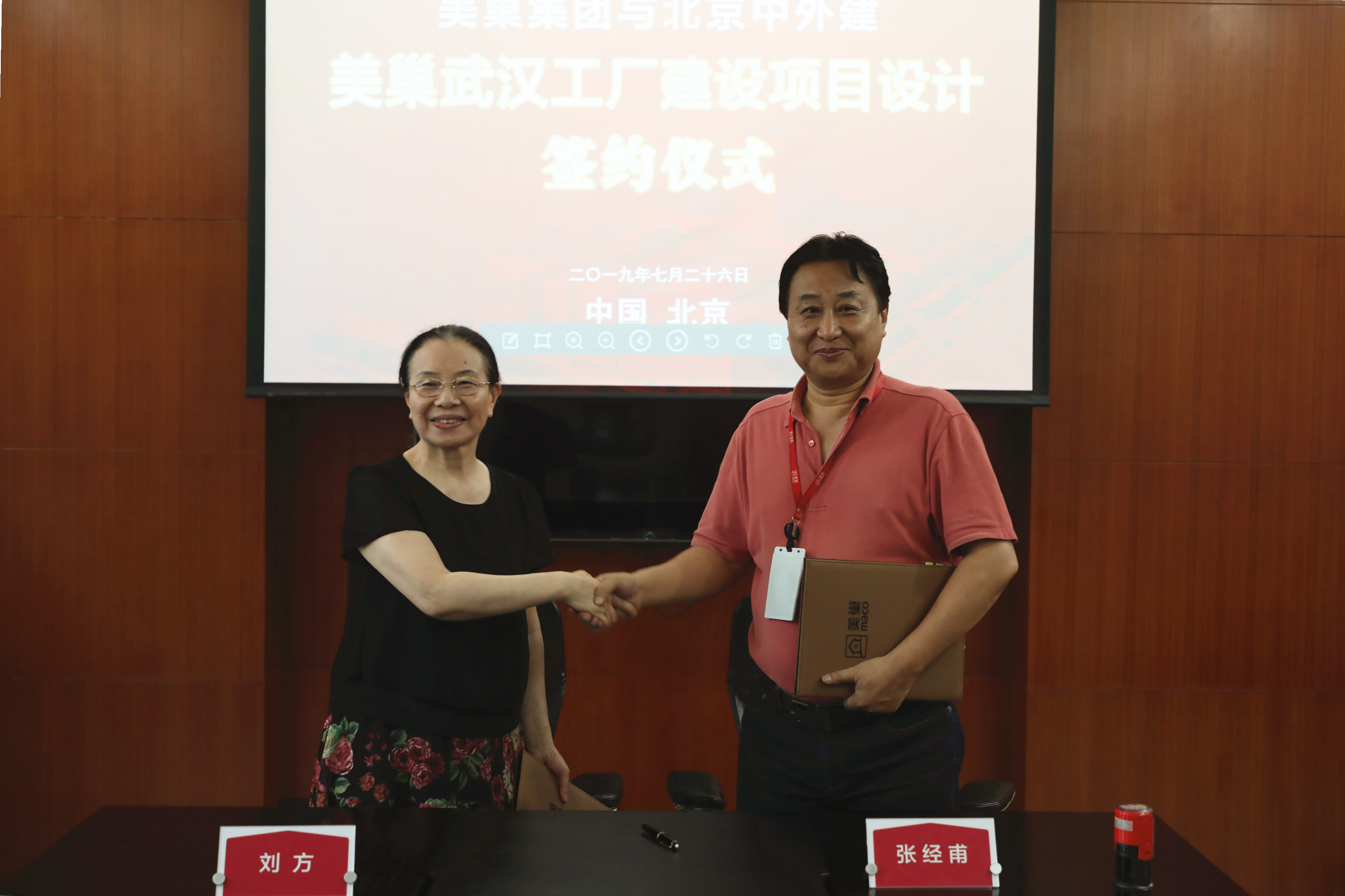 2019年7月26日,美巢集團武漢股份公司與北京中外建建筑設計有限公司關于美巢武漢工廠建設項目設計簽約儀式在美巢集團總部舉行。北京中外建董事長劉方、總經理楊進、第五分公司副總經理呂方建、第五分公司工程部經理趙大偉及美巢集團董事長張經甫、發展建設部總監孫寶蘭等人出席此次簽約儀式。
