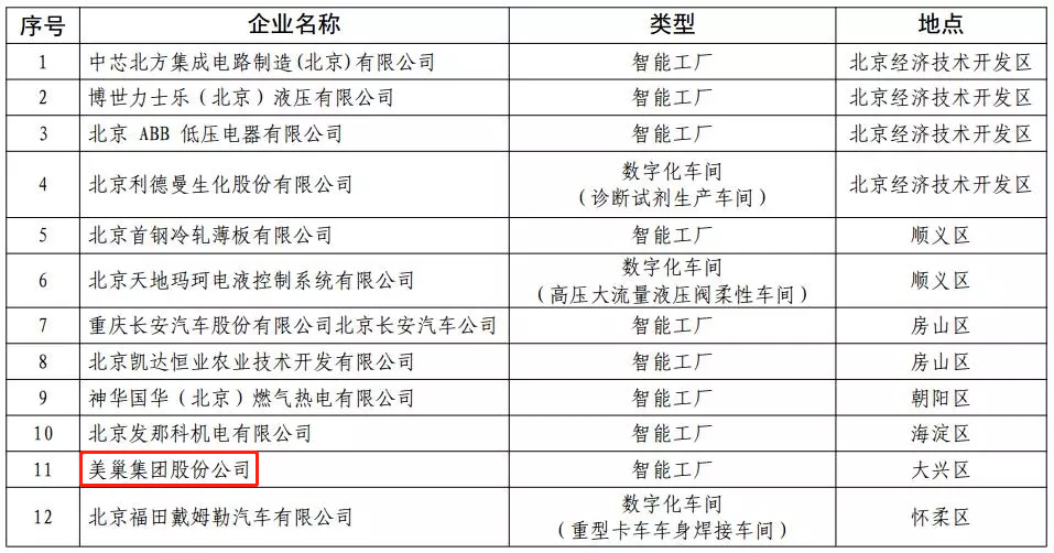 2018年北京市智能制造標桿企業名單