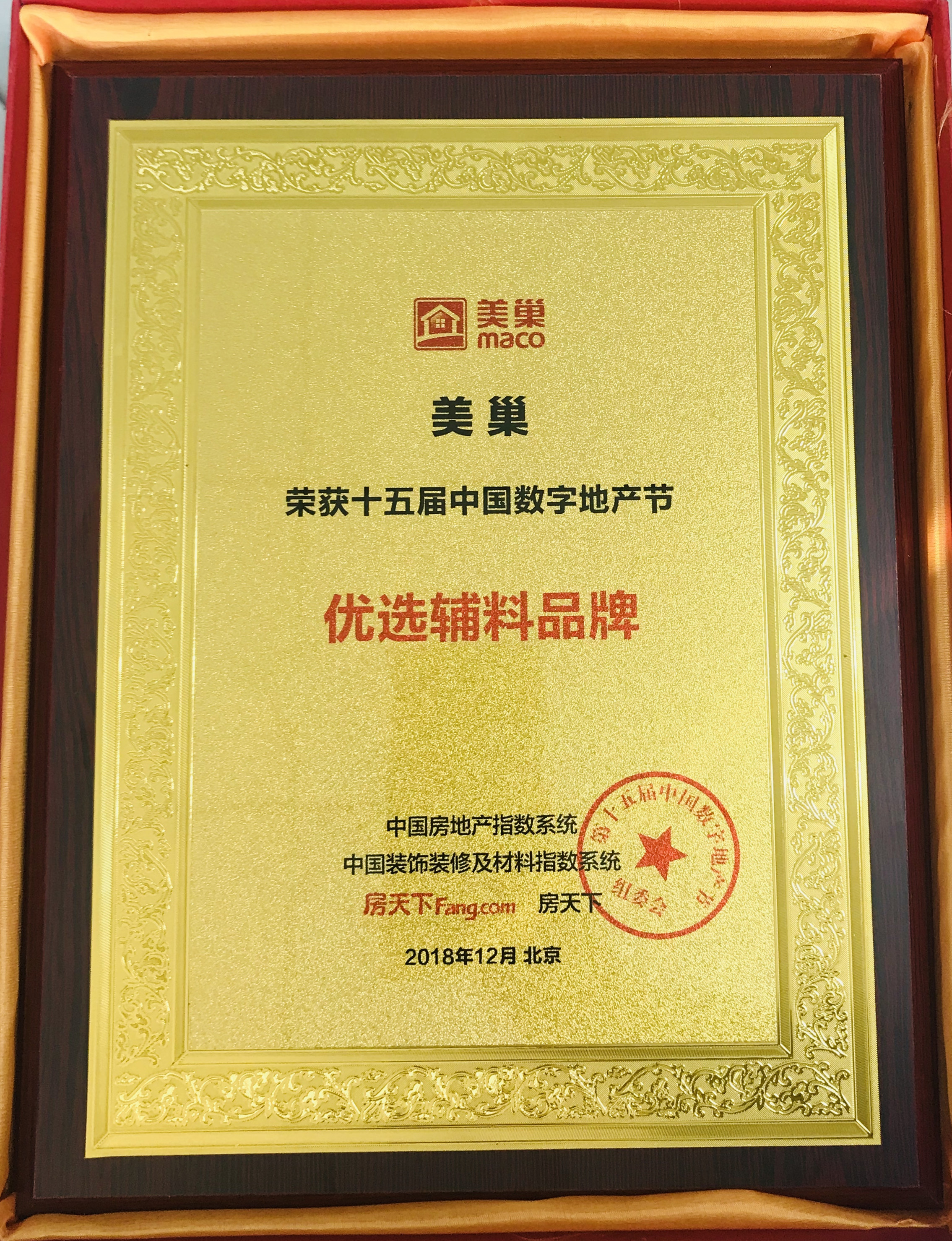 在大會的表彰環節,美巢集團被正式授予中國數字地產節“優選輔料品牌”稱號。作為一家22年專注于室內裝飾輔料的企業,一墻之隔的室外輔料美巢從不觸及,因為美巢深知只有專業化、細分化發展才能成就百年品牌,正是基于這樣的定位,才成就了如今的美巢。美巢的產品無論從質量還是環保標準,均經得起市場的檢驗,易呱平內墻膩子、墻尼粉刷/嵌縫石膏、墻錮混凝土界面劑、占瓷寶瓷磚膠粘劑、坊水固防水涂料/漿料等產品在消費者家庭裝修中備受青睞。