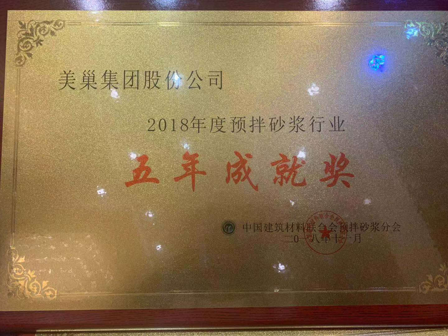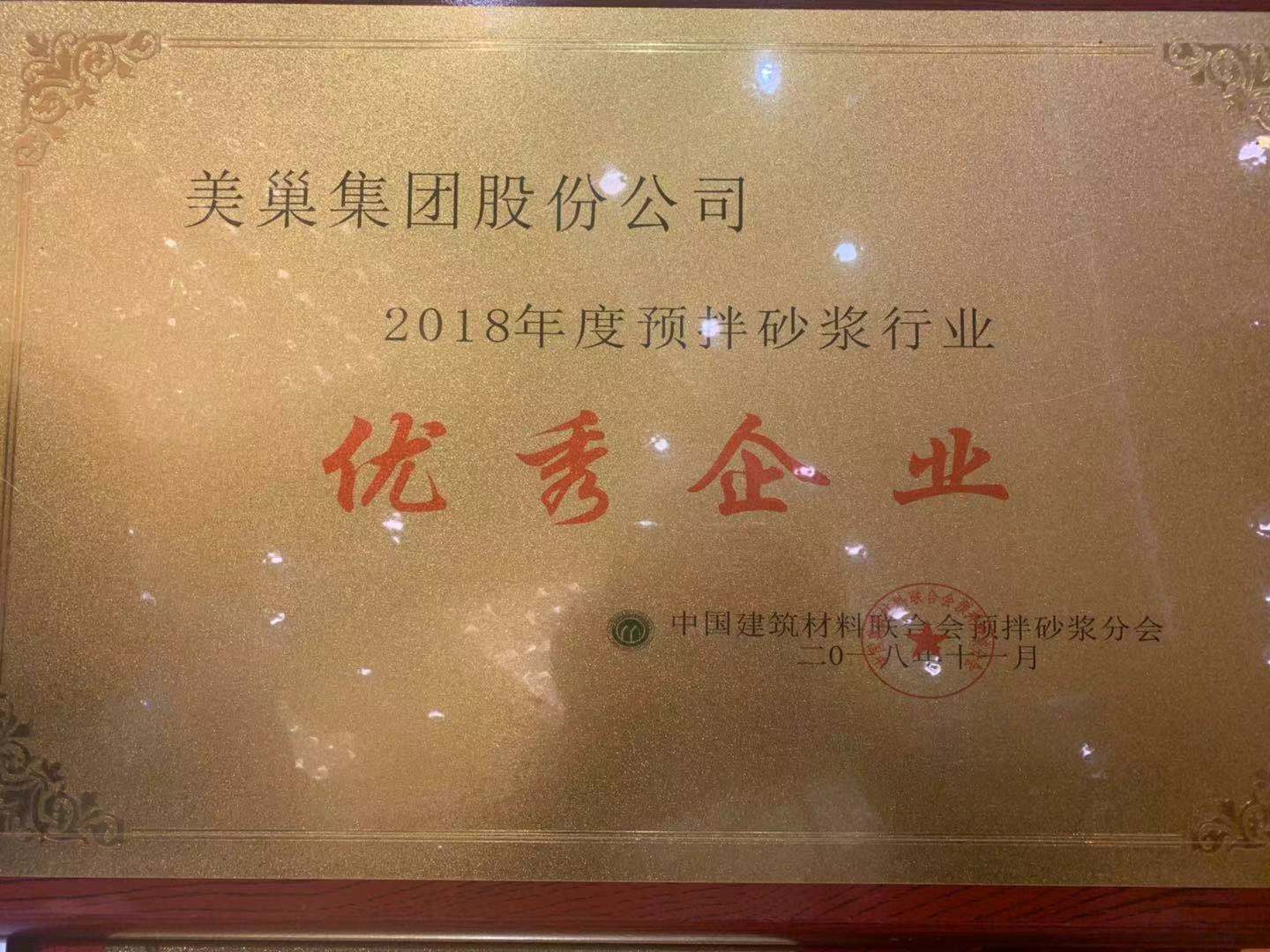 美巢集團(tuán)榮獲2018年度預(yù)拌砂漿行業(yè)最具影響力品牌