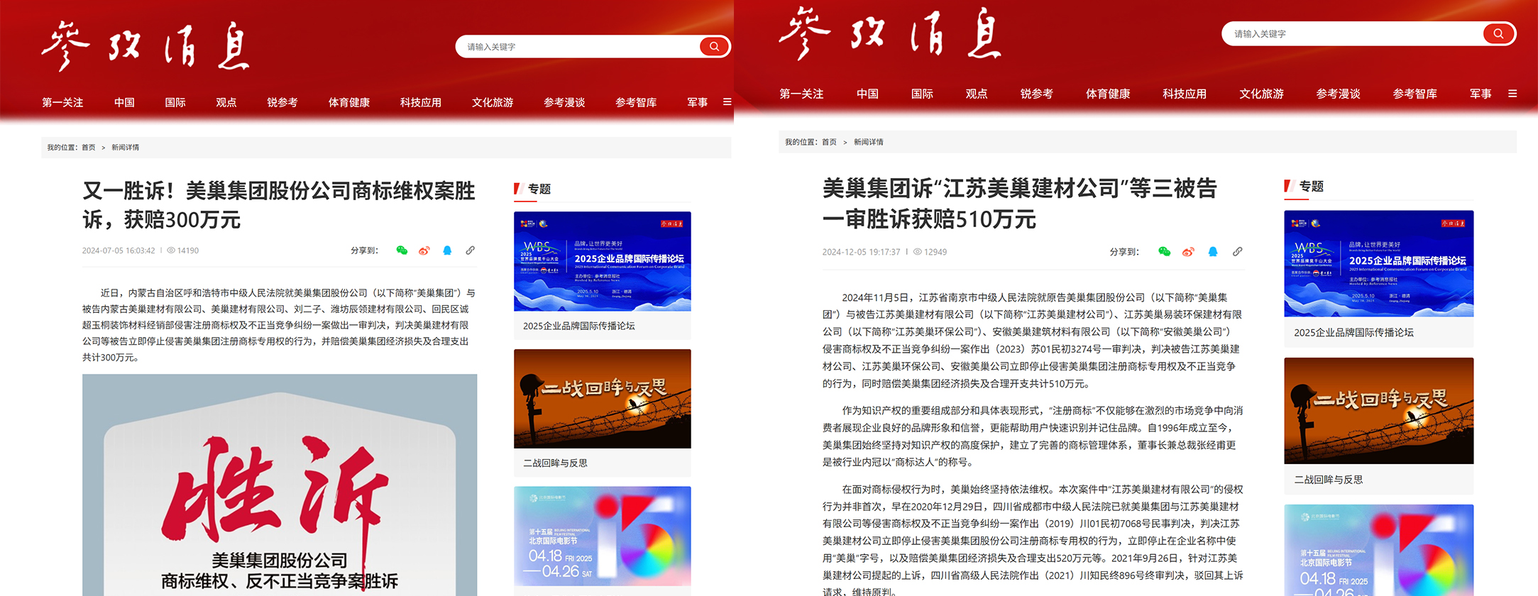 2024年11月5日,江蘇省南京市中級人民法院對美巢集團公司訴江蘇美巢建材有限公司、江蘇美巢易裝環保建材有限公司、安徽美巢建筑材料有限公司侵害商標權及不正當競爭糾紛一案作出(2023)蘇01民初3274號一審判決。