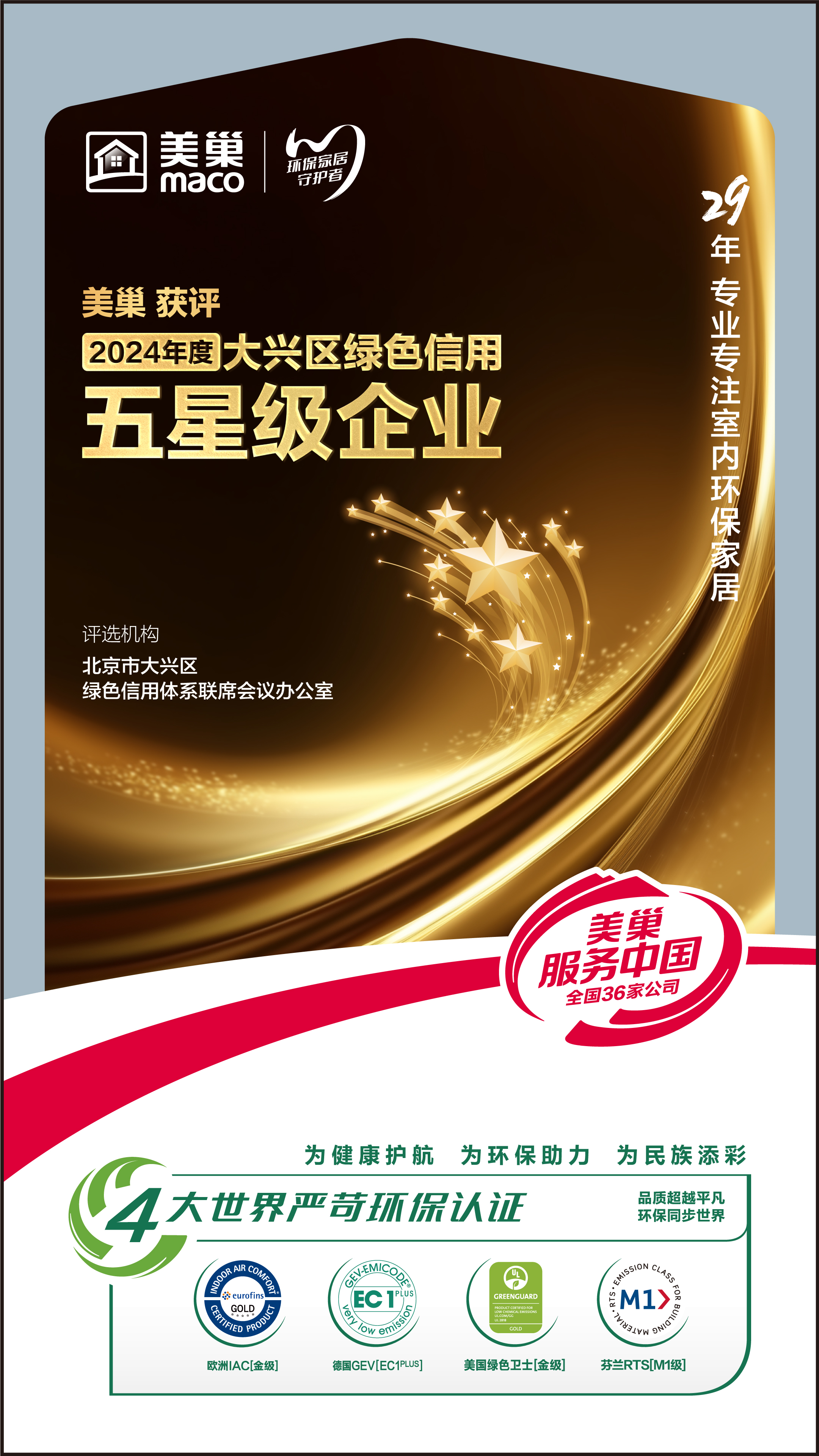 “綠色信用企業”是大興區為持續優化轄區營商環境,助力企業綠色高質量發展,提升區域生態環境質量而推出的綠色信用評價體系,旨在表彰那些在綠色發展轉型方面表現突出的優秀企業。本次獲評“綠色信用五星級企業”不僅是對美巢在綠色發展和企業良好信用方面的認可與肯定,也切實體現了其以科技創新驅動產業升級、以綠色理念引領可持續發展的綜合實力。