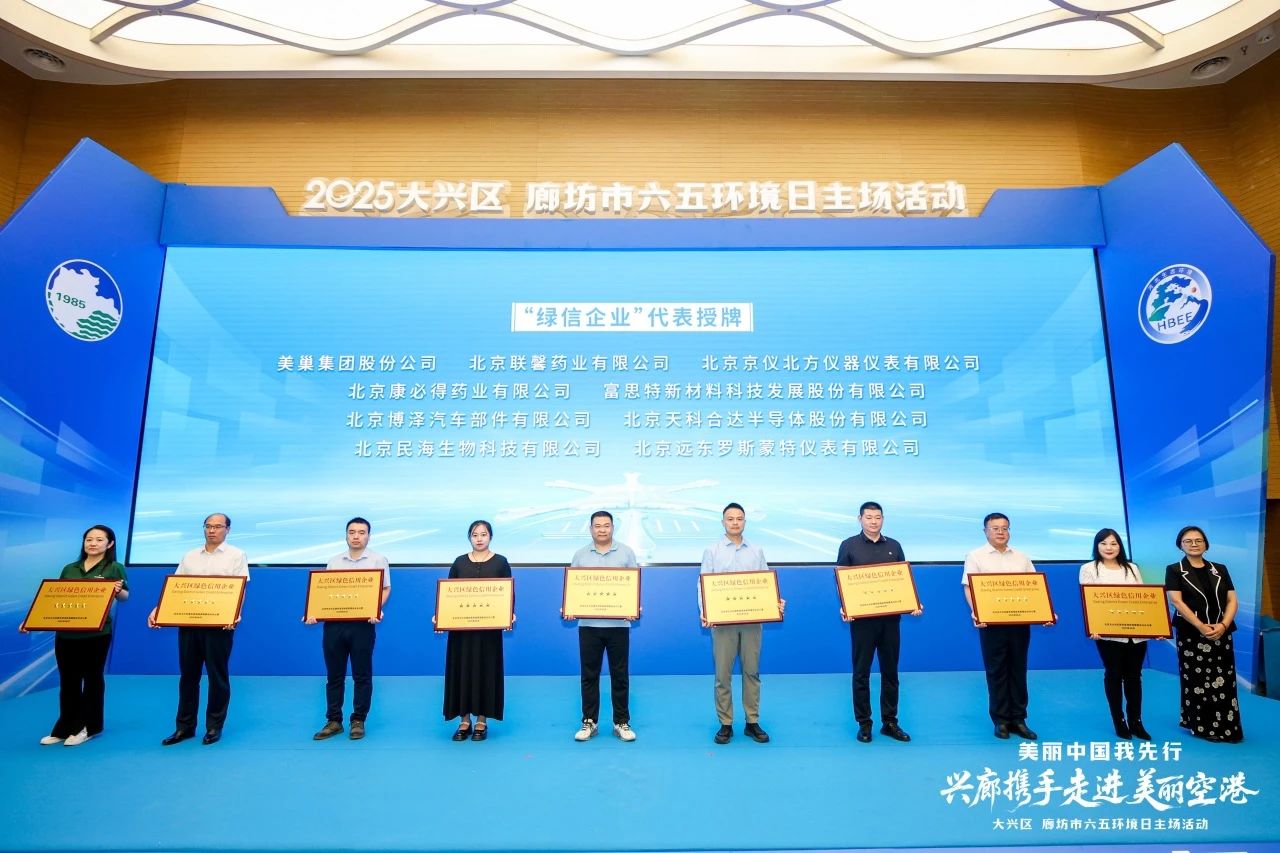 近日,在北京市大興區與河北省廊坊市聯合舉辦的“美麗中國我先行——興廊攜手走進美麗空港”六五環境日主場活動中,美巢憑借在環境守法、治污減排、低碳循環、科學管理和社會貢獻等5個維度的卓越表現,被評為2024年度“綠色信用五星級企業”。