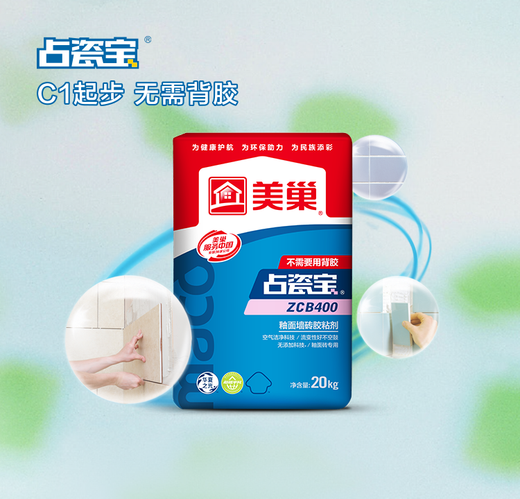 空氣潔凈科技、無添加科技*、流變性好不空鼓、釉面磚專用。 *采用無添加科技,在產品配方設計和生產過程中未人為添加甲醛、VOC(揮發性有機化合物)、苯系物(苯、甲苯、乙苯、二甲苯)及可溶性重金屬(鉛、鎘、鉻、汞),詳見環境標志產品認證Ⅱ型證書。 |