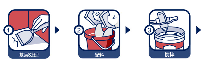 | 理論消耗量: | 地面每平方米(干膜厚度1.5mm)理論消耗量約2.6kg,實際消耗量因基層 平整度和施工方法略有不同。 |