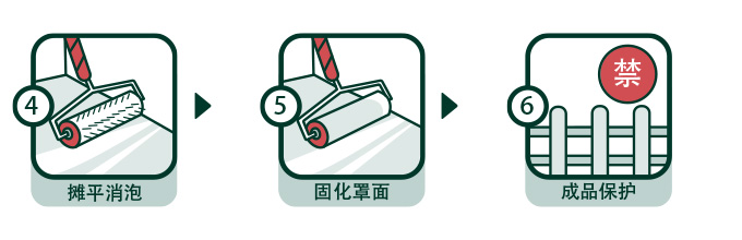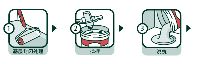 | 施工事項(xiàng): | 施工面積較大時(shí),應(yīng)設(shè)置分隔縫。澆筑厚度不得低于3mm,澆筑后用鋸齒抹刀或刮板等輔助攤平,并用消泡滾筒進(jìn)行輔助消泡。攪拌好的砂漿須在30分鐘內(nèi)用完。 |